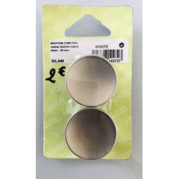 Matière : Zamac nickelé satiné - Couleur: gris argenté - Diamètre du bouton : 35mm - Contenance : 2 boutons.